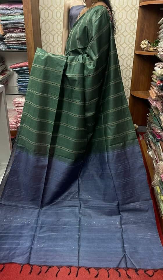 👉🏻 Soft silk semi tussar silk contrast pallu saree