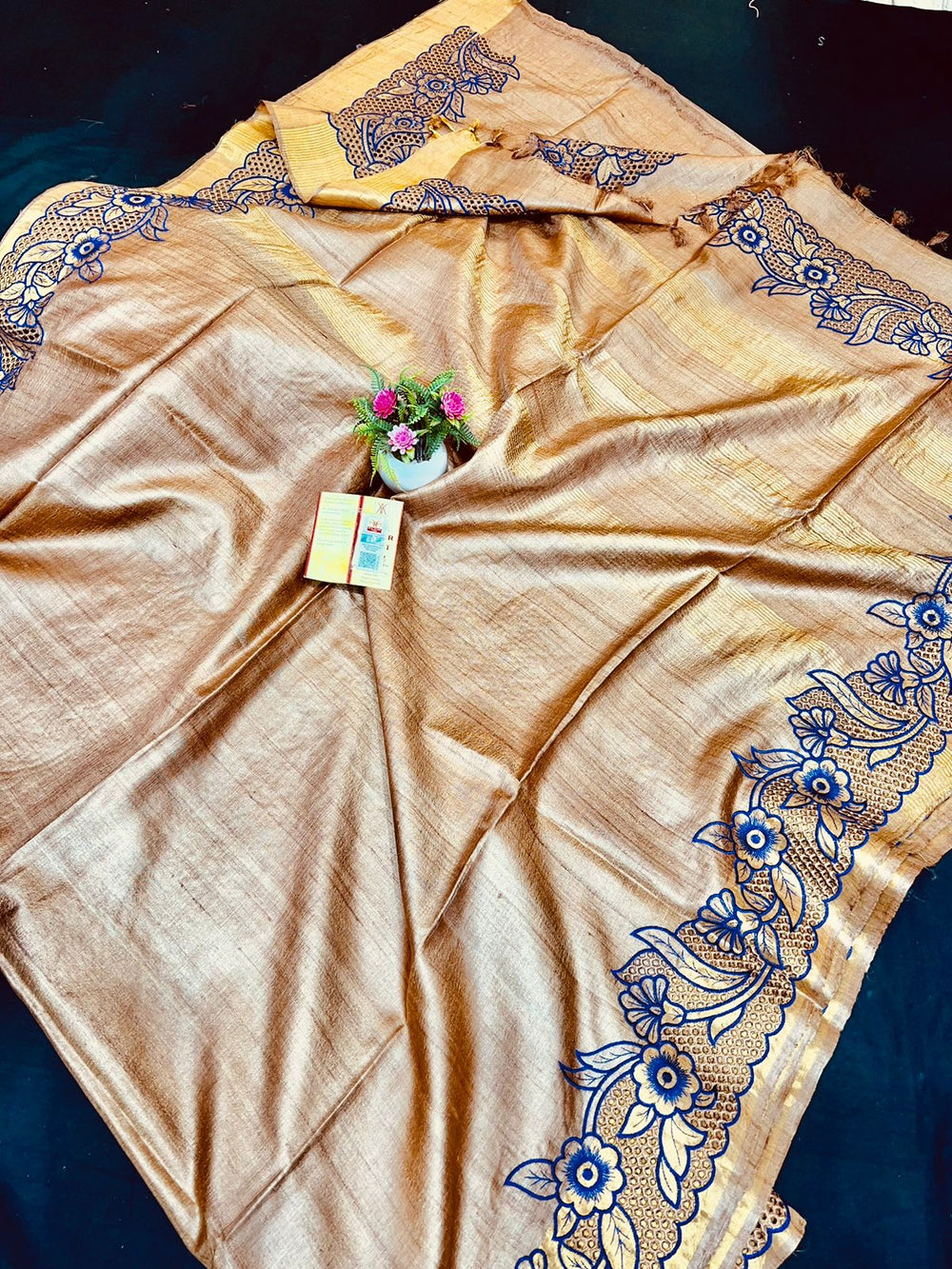 This is a beautiful Ghicha Tussar Embroidery Silk Saree enhance the overall appeal of your look.