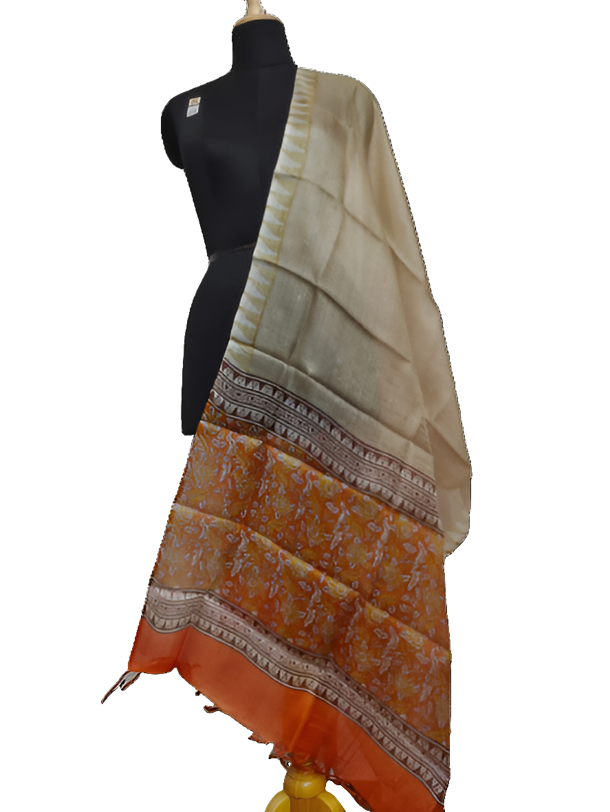 Tussar silk hand block print Dupatta