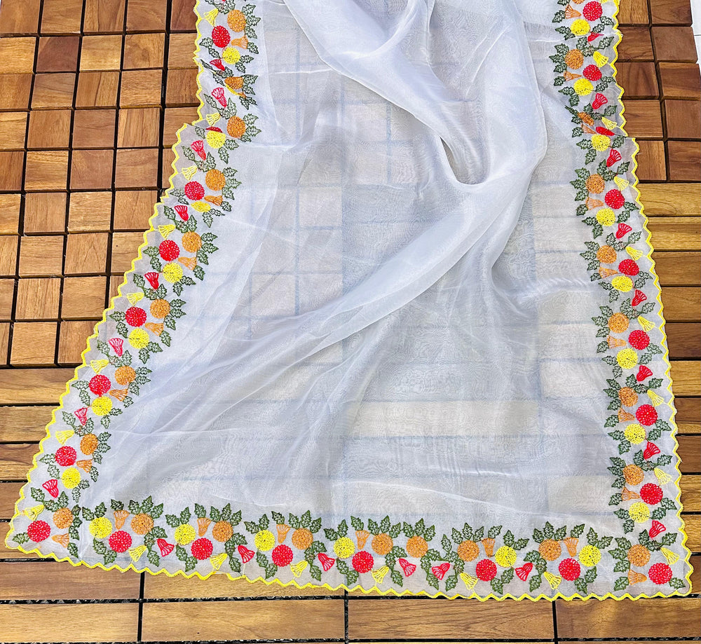 Semi organza beautiful viscose embroidery saree